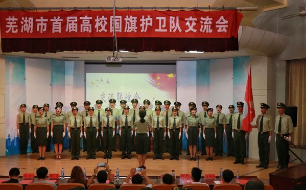 为贯彻落实习近平总书记系列重要讲话精神,隆重纪念中国共产主义青年团成立95周年,进一步发挥高校大学生国旗班在弘扬红色信仰、建设校园文化、服务学校育人方面的积极作用,在青年学生中深化社会主义核心价值观和爱国主义教育,由安徽工程大学、皖南医学院、安徽信息工程学院、安徽师范大学皖江学院主办,安徽工程大学发起并承办的“一学一做展风采火红青春映国旗”芜湖市首届高校国旗班展示交流活动于6月10日在我校举行。4所高校150余名国旗班成员参加了活动。我校党委学工部负责人以及4所高校团委负责人、历届国旗班班长代表出席了活动。
