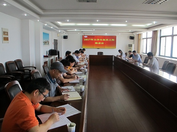 6月16日下午,学校在行政楼1215会议室召开大学生征兵工作推进会,副校长郭兴众主持会议,各学院分管学生工作领导及宣传部、学生处、武装部等部门负责人参加会议。