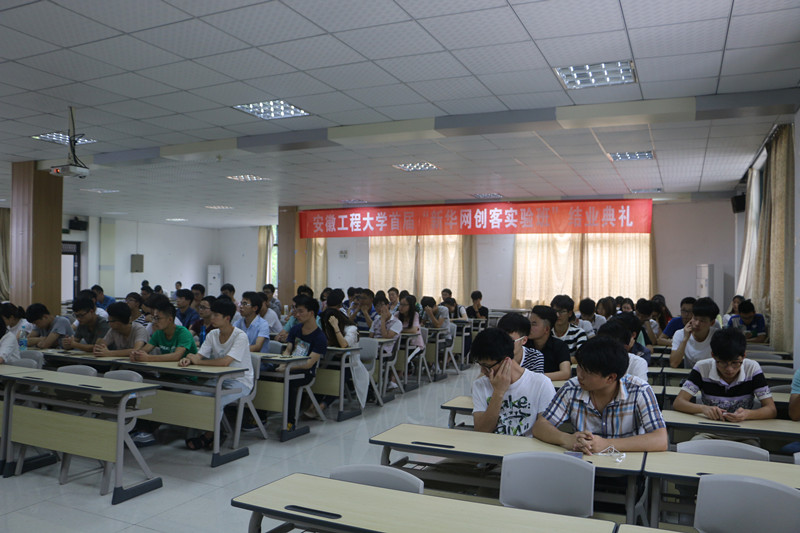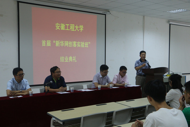6月14日下午,我校举行首届“新华网创客实验班”结业典礼。校学生处处长、创业学院副院长张开炳,新华网创客大学芜湖项目负责人庄荣华,创客实验班讲师、班主任和92名学员参加了典礼。结业典礼由校学生处副处长、创业学院常务副院长李卫东主持。