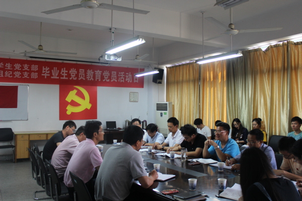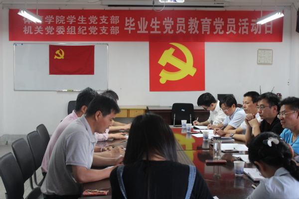 为进一步落实“两学一做”学习教育制度化常态化要求,不断深化毕业生党员“五个一”专题教育,切实增强毕业生党员党性意识、党员意识,在庆祝建党96周年到来之际,在2017届毕业生即将踏上人生新的征程之时,6月16日下午,体育学院学生党支部和机关党委组纪党支部共同举办了“体育学院毕业生党员专题教育”主题党日活动。活动由体育学院学生党支部书记王彦青主持。
