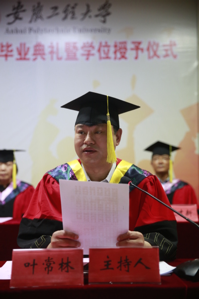 接着,叶常林宣读学校2017届优秀硕士学位论文评选结果、2017年安徽省品学兼优毕业生表彰文件、2017年校级优秀毕业生表彰文件。