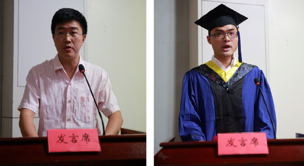 导师代表、生物与化学工程学院朱贤东教授和电气工程学院王伟同学分别代表导师和毕业生在毕业典礼上作了发言。