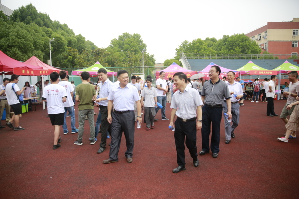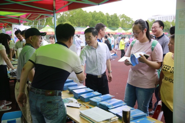 6月26日上午,由安徽省教育招生考试院主办,我校承办的2017年普通高校沿江片招生现场咨询会在我校第一田径场顺利举行,来自省内外各批次共281所高校的工作人员现场为考生和家长答疑解惑。参加本次咨询会的高校不乏复旦大学、南京大学、浙江大学等“985”名校。安徽省教育招生考试院副院长肖建荣、招生考试研究处处长胡雨生,校党委副书记、校长刘宁,副校长叶常林、郭兴众来到咨询会现场看望工作人员,与学生及家长亲切交谈。
