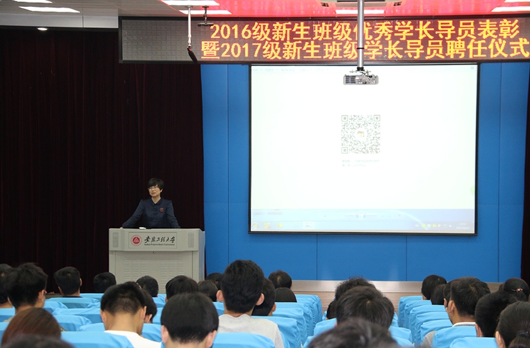 土木143班胡赟、电气152班许文俊代表2016级优秀学长导员发言,各自总结了一学年来工作开展情况,分享了工作体会。计算机与信息学院党委副书记章靖平、机械与汽车工程学院辅导员高倩,分别从学院和辅导员角度阐述了如何做好学长导员工作,以及如何处理好工作与学习之间的关系。