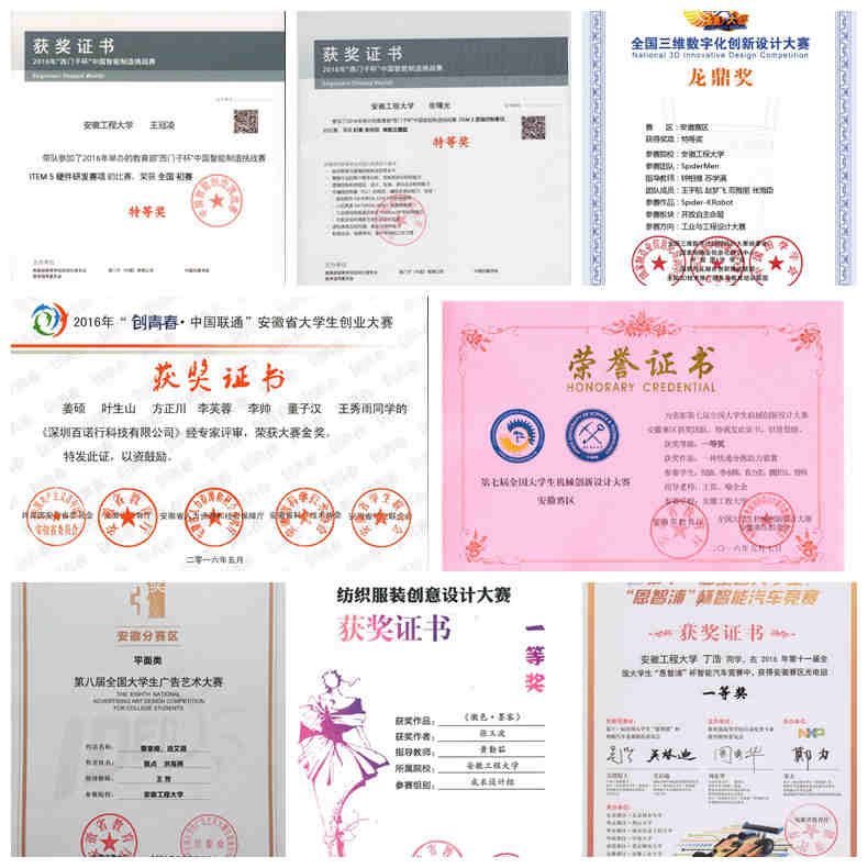 2016年我校学科与技能竞赛工作取得了丰硕成果,也创下了学科竞赛历年新高。全年先后共计15000人次参加了140余项赛事,1600名同学在省级以上各类竞赛中获得奖项,其中国家级奖项160项、省级奖项476项。先后获得2016年“西门子杯”中国智能制造挑战赛全国赛以及华东赛区两项特等奖、第九届全国三维数字化创新设计大赛(安徽赛区)特等奖、2016年“创新创业”全国管理决策模拟大赛安徽省赛特等奖以及第二届安徽省“互联网+”大学生创新创业大赛获得金奖,等等。