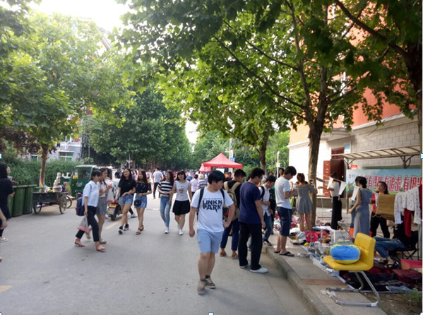 为了帮助同学们的闲置物品发挥应有价值,在毕业生离开母校、走上工作学习岗位之前开展一次“勤俭美德”教育,弘扬勤俭节约的良好风气,以实际行动落实“创新、协调、绿色、开放、共享”发展理念,建设资源节约型社会,在每年毕业季临近之际,学校均举办的毕业生旧货交易市场都吸引了众多的毕业生、在校生以及社会人员前来交易,成为美丽校园的一道亮丽风景线。