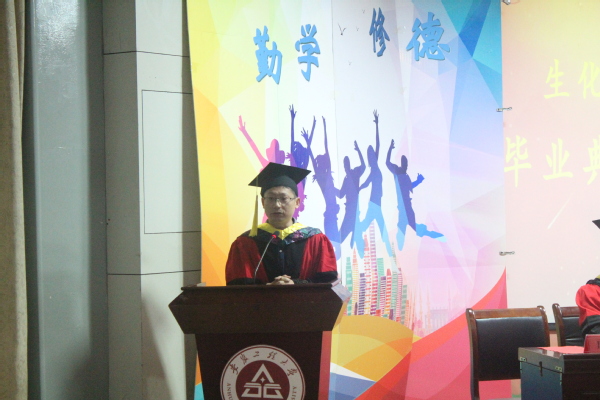 苏国红深情致辞电气学院毕业生:“现在你们在收拾行囊也在收拾心情和对大学的记忆。有许多的不舍,但我相信更多的是对未来的期待,作为师长,我把‘勿忘初心,坚守梦想;勇于担当,不负使命;脚踏实地,铸造精彩’作为临别赠言,希望你们乘风破浪,逐梦远航!”