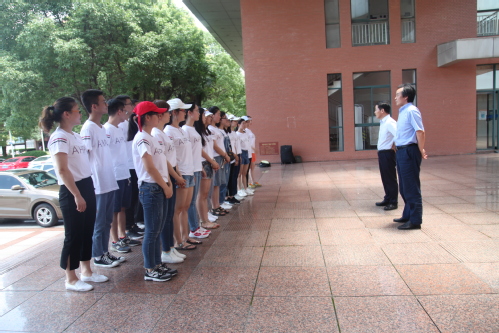 7月4日上午11:30,2017赴美游学营出征仪式在行政楼A座大厅举行,游学营领队和成员共计23人参加仪式,校长刘宁在出征仪式上致欢送辞。出征仪式由国际处处长金成星主持。