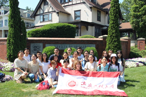 我校2017优秀大学生赴美游学营23人经过近20小时的飞行(含中转),于7月6日凌晨顺利到达UB(University of Bridgeport)。当地时间7月8日上午,我校游学营成员在UB商学院参加了开学典礼。翁心龙博士对我校师生的到来表示热烈欢迎,同时详细介绍了游学安排和安全注意事项。随后,UB两位知名教授用生动风趣的语言为同学们介绍了美国文化和UB校园文化。游学活动虽然刚刚开始,但游学活动精彩纷呈。