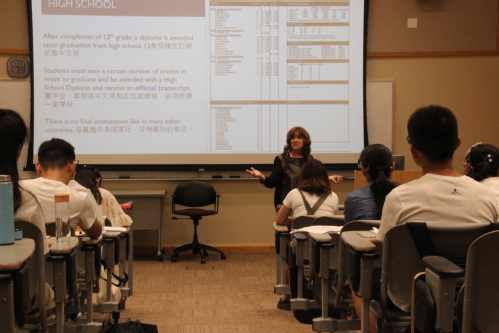 学习是此次游学营的主要内容之一。UB为同学们安排了各类讲座,让大家从各个方面去了解美国的文化、教育与风土人情。Kirkley教授风趣幽默,带来了一场生动的讲座:“中国学生学习英语的方法”,同时他还带领同学们进行了英语诗歌鉴赏,领略了英语诗歌的魅力。在“学唱美国民歌”专题讲座中,Cooney教授以他的激情和活力,用一把吉他演绎了一曲曲经典的美国民歌,让同学们体会到了美国音乐的魅力和美国大学课堂独特的一面。随后,UB还将安排“美国电影歌曲”、“美国高等教育”等特色讲座。