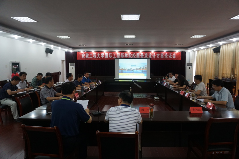 为优化国际工程师学院校园景观设计方案,7月12日上午,学校在行政楼1314室召开国际工程师学院校园景观设计方案专家论证会。校长刘宁,副校长郭兴众,安徽农业大学教授黄成林、上海华蓝设计(集团)有限公司景观所所长方颖、安徽城建设计研究总院有限公司正高工刘基,外国语学院党委书记魏长顺,建设办公室主任朱尚玉,建设办公室副主任李敬华、王如高,同济大学建筑设计研究院负责人参加了会议。会议由朱尚玉主持。