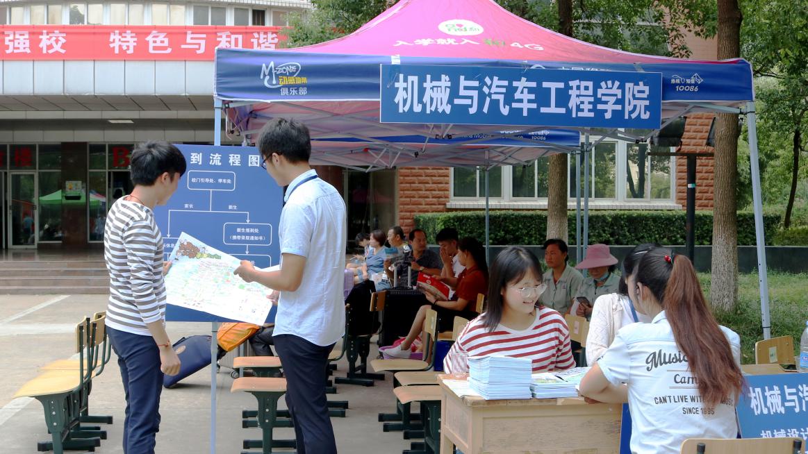 机械与汽车工程学院制作了简化的报名流程牌,工作人员更是一对一地细心指引,竭尽所能为新生解答疑惑,新生报到工作井然有序。