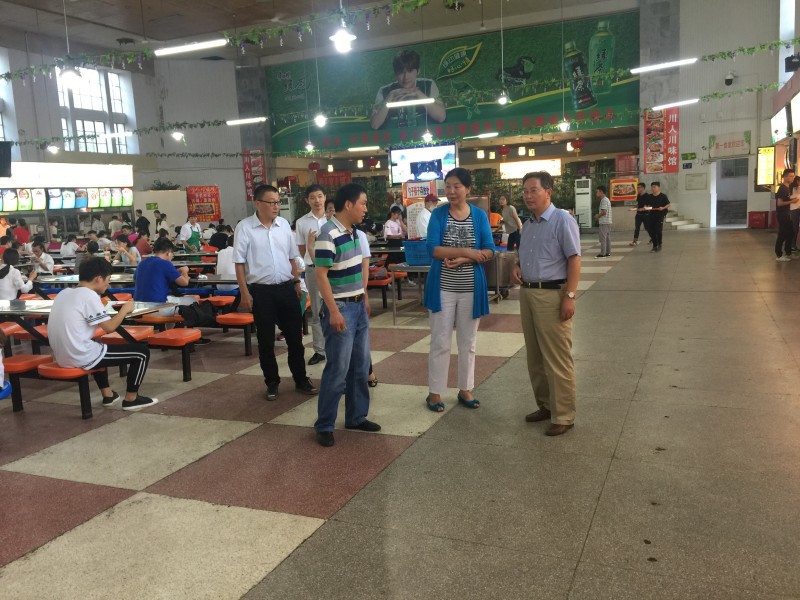 9月7日下午,安徽省高校后勤管理中心副主任高昆、中国科技大学学生社区服务中心主任章仲楷等一行来我校检查指导2017年新生公寓用品等工作。在副校长郭兴众、后勤服务集团总经理胡长新等人陪同下,高昆等人先后到第一食堂、女生10#宿舍楼、优里快递服务中心、安普后勤服务有限公司等,实地调研了解相关工作和服务情况。