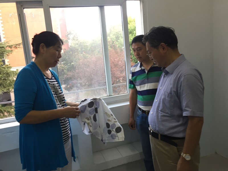 在检查中,高昆对我校积极推进标准化公寓建设和新生公寓用品到铺服务给予肯定,对安普后勤服务有限公司的后勤创新运作模式和服务质量给予赞扬,并对用品验收问题现场予以指导。