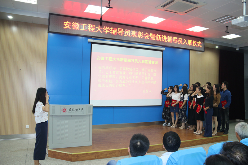9月19日下午,伴随着庄严的宣誓声,学校举行2017年辅导员表彰暨新进辅导员入职仪式。校党委书记陈其工,党委副书记苏国红出席仪式。宣传部、教务处、校团委、学工部和各学院学生工作负责同志,全体辅导员、新生代表参加仪式。仪式由学工部部长张开炳主持。