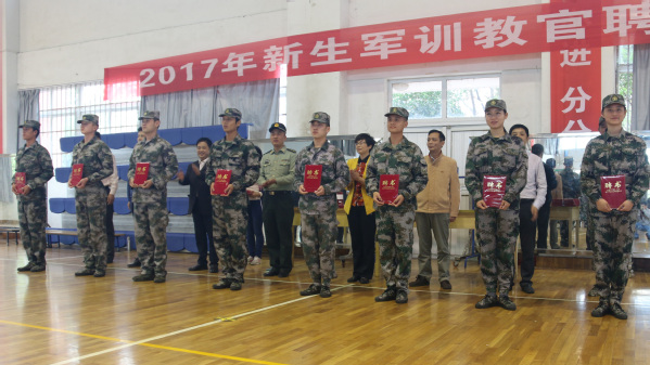 与会领导为2017级新生军训教官颁发聘书