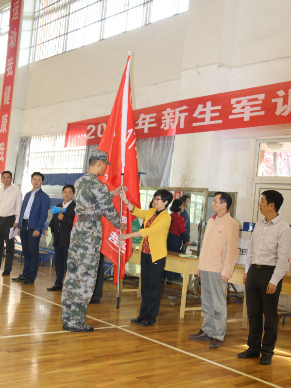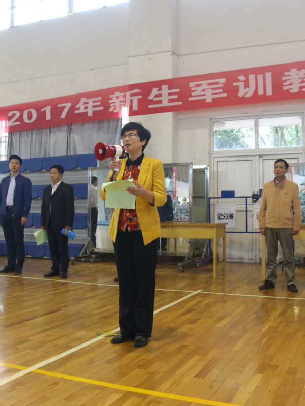 苏国红郑重向2017级新生军训教导大队授旗后,作了热情洋溢的讲话。她说,退役复学的同学通过军旅生活的磨炼,拓宽了视野,增长了见识,培养了责任和担当,变得更加坚韧和成熟,有很多人在部队获得了“优秀义务兵”、“新闻工作者先进个人”、“政治工作先进个人”等荣誉称号,立了功受了奖,表现突出。国旗班成员,作为国旗的忠实守护者,有着团结的气氛、向上的思想、过硬的素质、严谨的作风。能够被选拔成为军训教官,这是学校对大家的信任,也是一件极光荣的任务。从明天开始,大家将作为一名教官,执行威严的号令,带领全校5200余名新生开展军事训练。希望大家以军人的形象,过硬的专业素质,科学有效的训练方法,当好指挥员,会讲解示范、会纠正动作、会组织训练、会做思想工作,以饱满的精神状态,展现战士的刚毅、军人的品格,传承部队的光荣传统,严格要求自己,以身示范,严格要求同学,不折不扣地落实军训要求,达到“掌握基本军政技能,加强组织纪律性,增强爱国拥军意识”,保质保量完成军训任务。