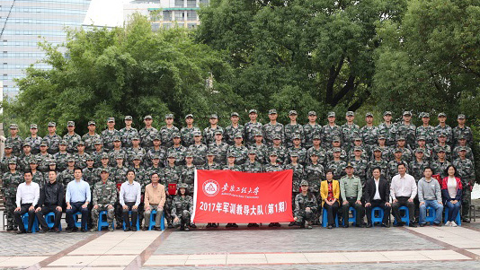 与会领导与2017级新生军训教官合影