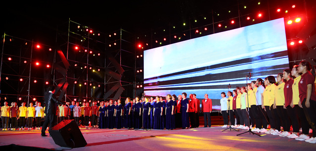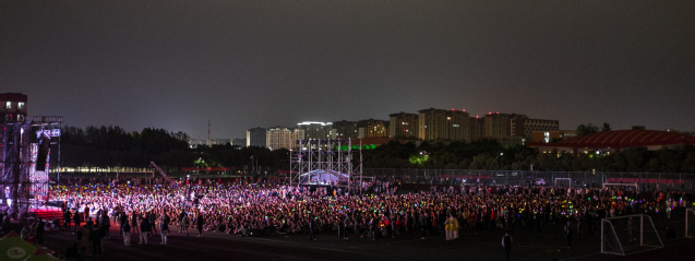 晚会现场2017级新生共同举起手中的荧光棒,随着歌曲的节奏挥舞吟唱,荧光棒闪烁在黑夜下的田径场,形成了一片荧光海,晚会在同学们热情高涨的呼声中和经久不息的掌声中落下帷幕。本次晚会还利用新媒体方式进行网络直播,累计超万名师生、校友、学生家长等在线观看了演出。