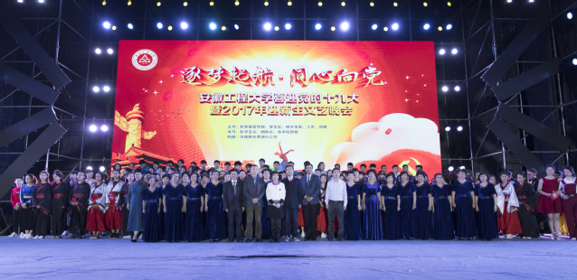 10月13日晚7:30,“逐梦起航 同心向党”---安徽工程大学喜迎党的十九大暨2017年迎新生文艺晚会在第一田径场精彩上演。校党委副书记苏国红、纪委书记王红月等校领导,相关部门和各学院负责同志,新生辅导员及全体2017级本科生、研究生一同观看演出。晚会由校党委宣传部、学生处、研究生部、工会、团委主办,校学生会、团联会以及各学院团委承办。