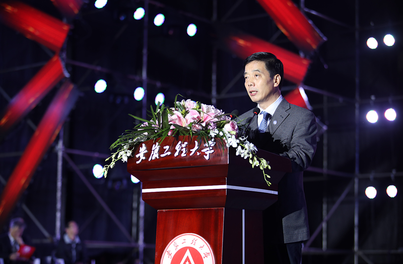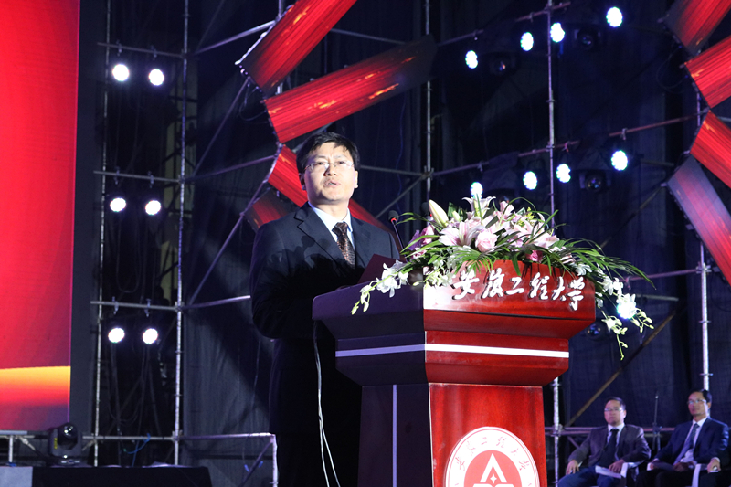 典礼中,现场师生共同观看了视频《这一站,安徽工程大学2017》,送子圆梦的父母、温馨热烈的迎新场景、优美宜学的校园环境、学长以及校友们的分享和殷切寄语,演绎了一个怀揣梦想的学子离家别亲,走进安徽工程大学开始逐梦的故事。管理工程学院谢荣见老师作为教师代表发言,对新同学们表示欢迎并寄予殷切期望。老生代表、校十佳大学生、退伍复学学生,现任校学生会副主席,体育学院仇金丽同学,希望和新同学一道,发奋学习,立志成才。