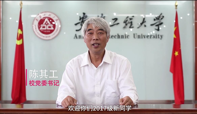 校党委书记陈其工通过视频寄语2017级新同学。他说,2017级新同学出生在世纪之交,新同学的“青春梦”注定和中华民族伟大复兴的“中国梦”同向同行。他希望同学们认真领会习近平总书记说的“青年朋友们,人的一生只有一次青春。现在,青春是用来奋斗的;将来,青春是用来回忆的”,不负韶华;要求新同学要积极践行“尚德敏学 唯实惟新”的校训精神,把读书学习当成一种生活态度,用青春做笔墨,书写无愧于伟大时代的绚丽篇章。他指出,今年是党的十九大召开之年,这为各位新同学的大学生涯赋予了不平凡的意义,让我们一起砥砺奋进迎接党的十九大,筑梦起航、同心向党。