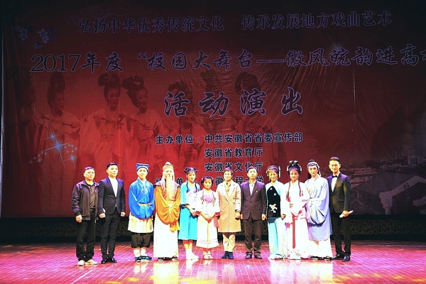 据悉,“校园大舞台-徽风皖韵进高校”由安徽省委宣传部、教育厅、文化厅联合主办,旨在通过为全省高校师生倾情奉献具有安徽特色的文化演出,充分展示安徽特色的文化发展成果,推动中华优秀传统文化在高校的传播和普及,弘扬社会主义核心价值观。本次活动是继2014年安徽省歌舞剧院、2016年安徽省徽京剧院之后第三次走进我校。