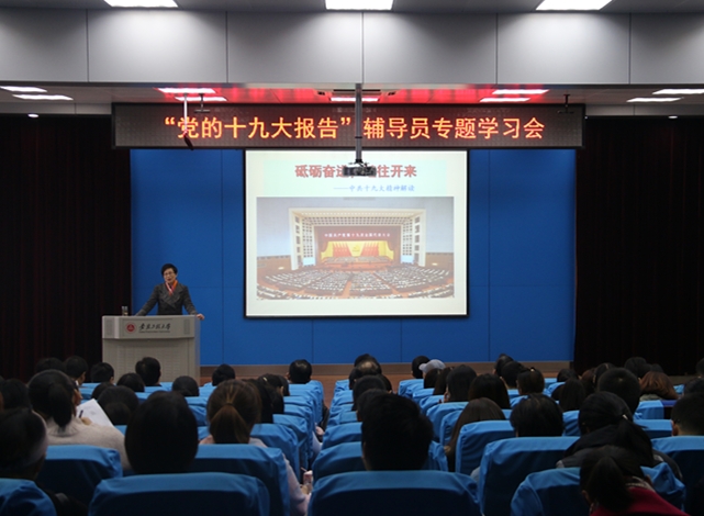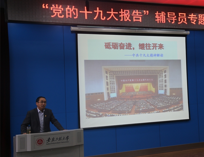 11月7日上午,学校在5教117举办了“党的十九大报告”辅导员专题学习会。会上邀请了安徽师范大学辅导员基地主任、马克思主义学院院长高正礼教授作“砥砺奋进,继往开来——中共十九大精神解读”的专题报告。校党委副书记苏国红出席并主持学习会。各学院分管学生工作负责人,全体辅导员,学生处和校团委全体人员共100余人聆听了报告。