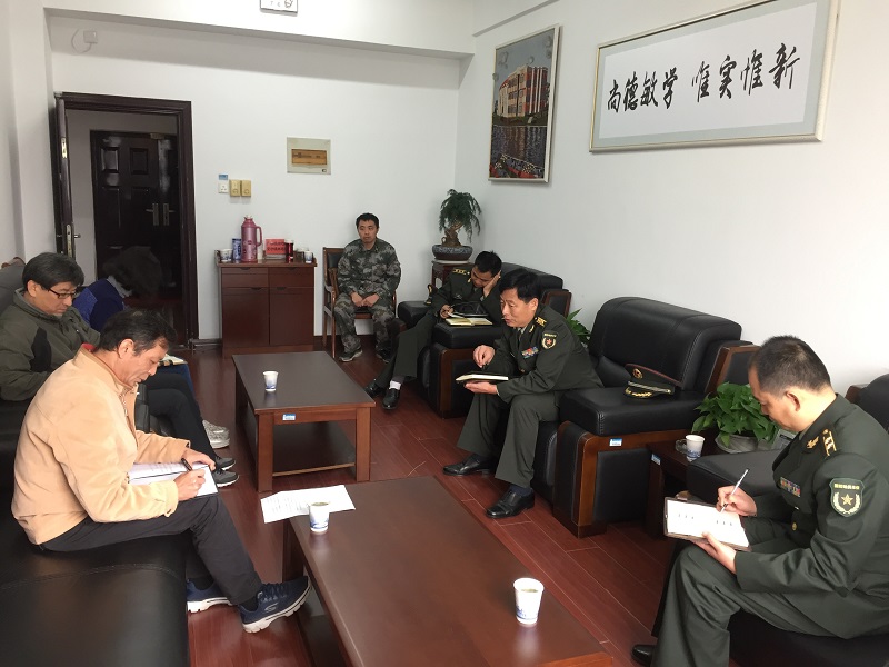 11月16日上午,芜湖市军分区副司令员杨进率军分区动员处处长杨兴高、鸠江区人武部副部长姚临江来校调研大学生征兵工作。学校武装部部长陈其峰、副部长江海和学生处人员参加调研会。