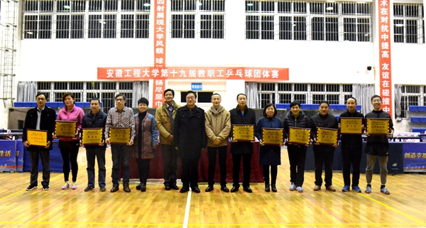 11月20日下午,由校体育运动委员会和校工会主办的第十九届教职工乒乓球团体赛在欢快的颁奖曲中落幕。副校长叶常林、校工会主席王河、校工会副主席张寅红、体育学院党总支书记文才新等主办单位领导观看了比赛,并在赛后为各优胜队颁奖。