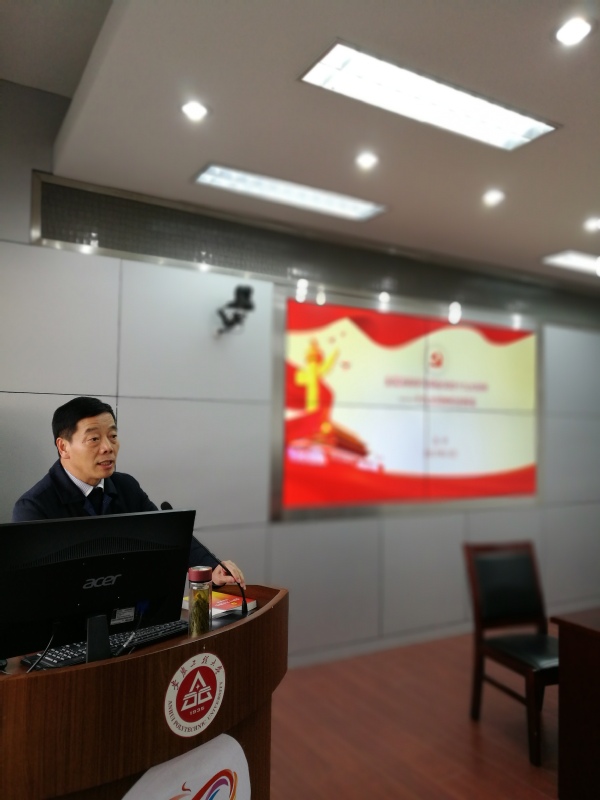 11月22日,校第四期教职工党员培训班在行政楼1121会议室举行党的十九大精神报告会,校党委副书记、校长刘宁为培训班学员解读宣讲党的十九大精神,与学员共话强国梦、强校梦、个人发展梦。校党委组织部副部长杨善祥主持会议。