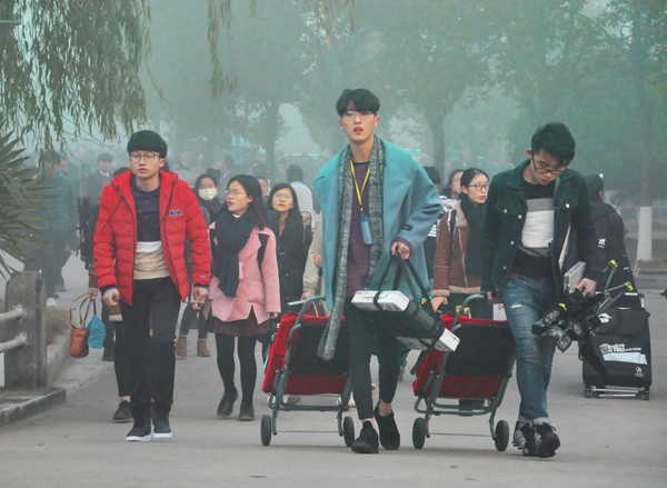 3号清晨,考生们早早就来到安徽工程大学考点