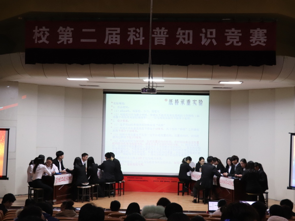 12月2日下午由校团委主办、生化学院团委和学生会承办的校第二届科普知识竞赛决赛于学术报告厅成功举办。本次活动以“科技点亮中国梦,勤学造就新青年”为主题,旨在丰富学生学习科学知识的兴趣,激发同学们的求知欲望,营造浓郁的校园学习氛围。