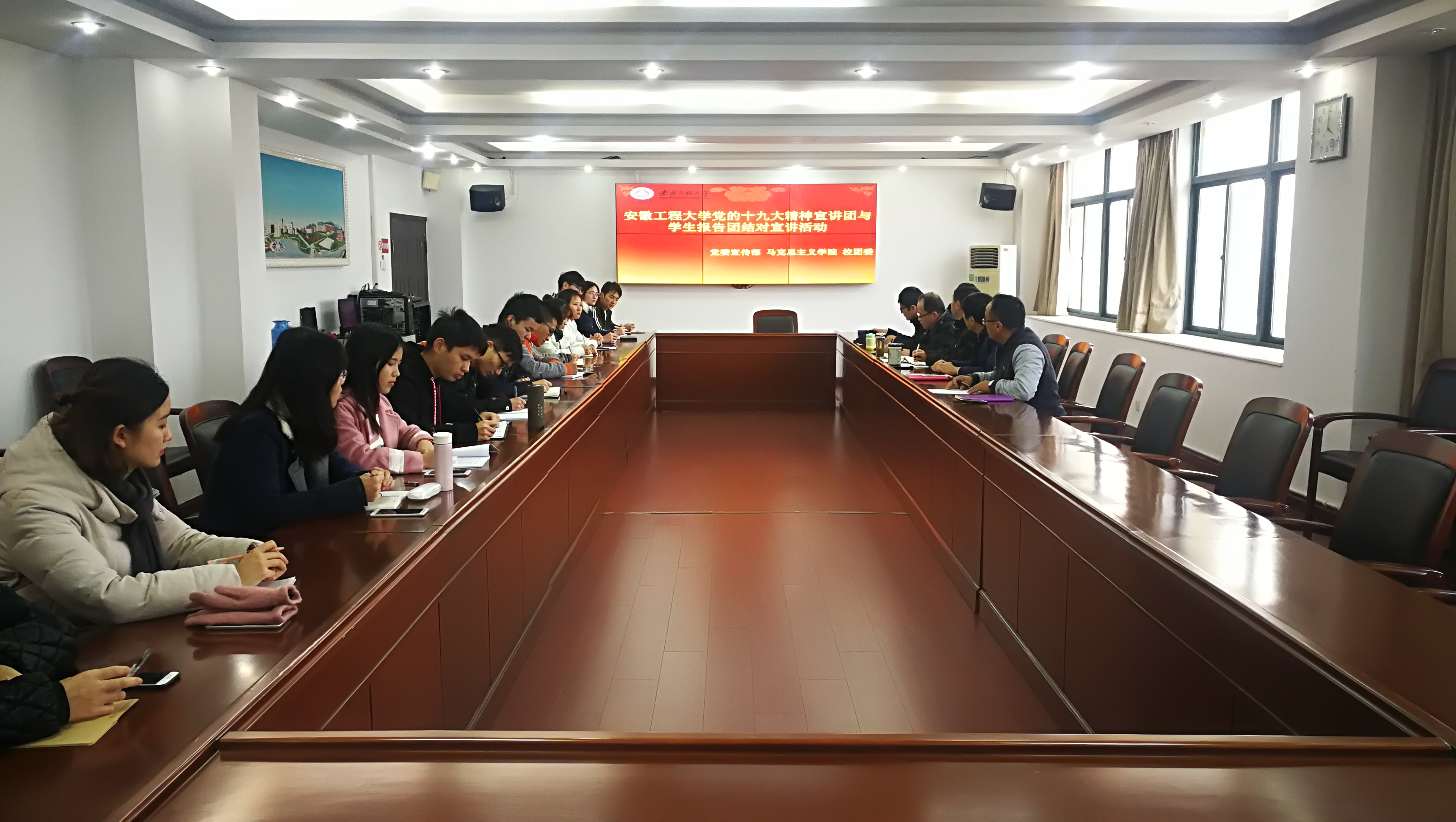 12月1日下午,我校党的十九大精神宣讲团成员与学生报告团成员结对宣讲启动仪式在行政楼1215会议室举行。由校团委、学生会、团联会主要学生干部,全省“放飞新时代青春梦—十九大精神走进青年”百人宣讲团成员,“团团讲团课”团队成员以及“与你一起分享”团员青年学习党的十九大青年微宣讲活动获奖选手组成的学生报告团成员参加活动。