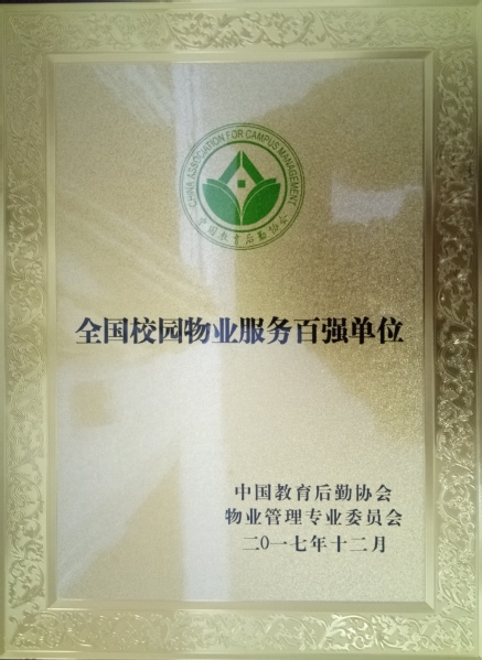 经专家组评审,中国教育后勤协会物业管理专业委员会审核,协会批准,我校芜湖安普后勤服务有限公司获得企业排名第49名,跻身全国校园物业服务百强单位。