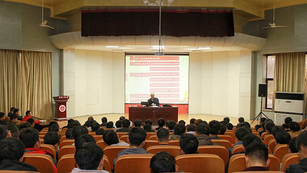 12月6日,校党委书记陈其工在学术报告厅为我校300多名本科生讲授《形势与政策》第一课,以“新思想、新方略、新目标、新举措、新气象、新作为——党的十九大报告精神解读”为题,给同学们上了生动一课,拉开了“党的十九大精神”专题教学本科生全覆盖的序幕。