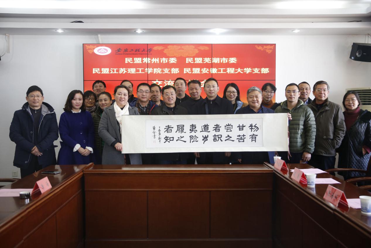会上,童明代表民盟芜湖市委对民盟常州市委和民盟江苏理工学院支部一行到芜湖和安徽工程大学调研交流表示欢迎。简要介绍了芜湖市民盟发展情况,期待多层次、多方面交流,感谢传经送宝。