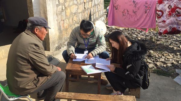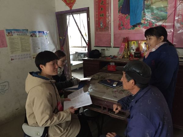 知行合一,牢记实践出真知。踏入贫困山区,才知城市的节奏与繁华;迈进老乡家门,方晓生活的艰难与不易。六天的评估中,师生们访村入户、实地查看,通过面对面交流、电话调查和他人访谈等方式逐一核查调查表信息。为掌握真实一手数据,趟沟过河、翻山越岭,不漏填一鸡一鸭,不绕过田地山场。村路颠簸,有同学晕车呕吐;人烟稀少,偶有被狗追咬。午饭空隙,同学们就在村里会议室趴着休息片刻;夜晚天黑,师生们就用手机电筒照亮通往下一家的路。尽管如此,没有一人喊过累、诉过苦。这些困难尚可克服,而语言交流不方便、走访对象智障聋哑等问题,才真正考验着师生们的工作实践能力和处事应变能力。面对老人时,同学们尽量用最大的音量、最通俗的语言询问情况,很多时候要重复多遍,老人才能理解;询问农户时,队员们努力将抽象的政策名词改成生活化用语,问卷里的“家庭总支出”变成了“大爷,您家今年花了多少钱,买了些什么?我来帮你算算”。一句家常话、一声短问候,不仅拉近了同学与农户的距离,也加深了对农村的了解认识。在环峰镇,常年独居的91岁的老奶奶,拉起来核查的胡茜茜同学的手拉起家常,临走时,老奶奶抹起干枯眼角的泪水久久不愿松手,两名同学眼泪也在眼眶里打转。在仙踪镇,一位刚刚做过腰椎手术的大妈告诉韩林同学:现在是党的政策好,照顾我们这些老人,不然我们哪里治的起病呀,共产党好,对我们这些老百姓好。“测评中,我接触到书本上所没有的知识,看到了校园内看不到的景象,这几天过得很充实,触动也很大,回去要更加努力学习”。统计151金铭同学深有感触。