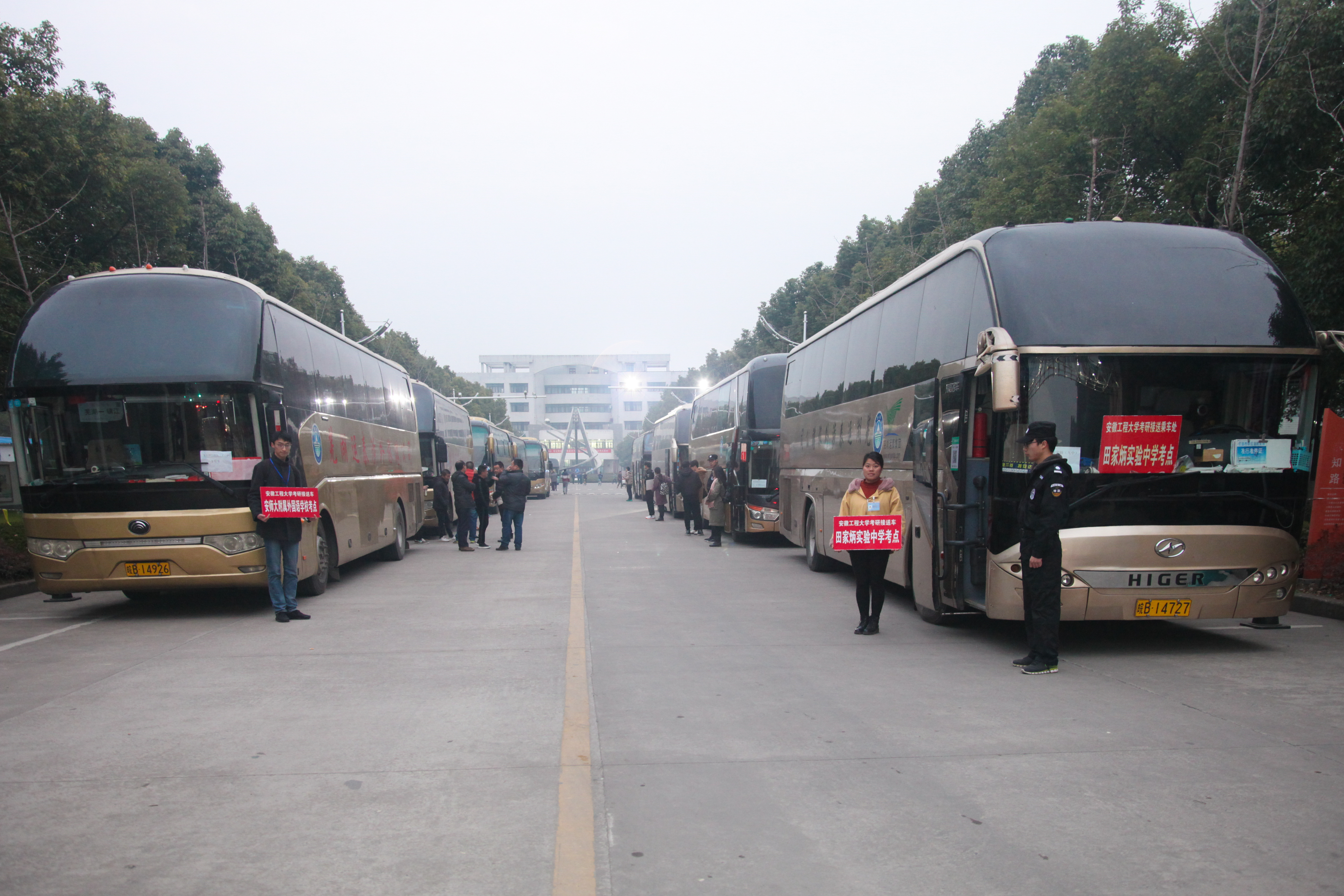 临近发车时间,天色大亮,车辆、考生、送考人员,一切均已就绪,送考大巴准时依次驶出校门,带着935名考研学子满满的自信和对未来美好的期许踏上了征程。