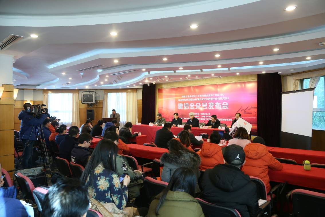 12月22日,我校建筑工程学院院长陆峰主持的2017年度国家艺术基金传播交流推广项目《皖南地区代表性古村落历史文化的数字化仿真实现》发布及座谈交流会,在芜湖市新闻发布中心(广电中心)圆满举行。我校党委书记陈其工,芜湖市委宣传部副部长罗智全,清华大学博士生导师、教授、《装饰》杂志主编方晓风,安徽省工程勘察设计大师杜先松,芜湖广电党委副书记柯南,我校科技处、建筑工程学院负责人,项目合作单位负责人以及项目研究团队主要成员出席发布会。发布会由校党委宣传部部长孙浩然主持。