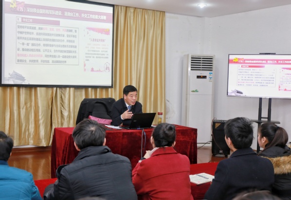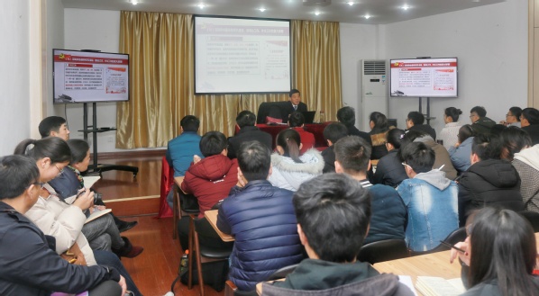刘宁以《用党的十九大精神指导学校发展——贯彻党的十九大精神若干思考》为题,从学习宣传贯彻党的十九大精神的意义、需要深刻领会的十个重要方面、如何用党的十九大精神指导学校发展进行了全面宣讲和深入解读。他强调,党的十九大精神内容丰富、博大精深,抓住重点、指导工作、推动实践,不仅是建设国内知名、省内一流的地方特色高水平大学的需要,也是青年大学生成长成才,在实现“两个一百年”目标征途中放飞青春梦想的需要。要围绕“新思想”聚焦聚力,用新思想武装头脑、指导实践、推动工作;围绕“新时代”聚焦聚力,奋力谱写学校快速发展新篇章;围绕“新目标”聚焦聚力,科学谋划学校发展的美好愿景;围绕“新部署”聚焦聚力,认真落实学校发展的重点任务;围绕“新要求”聚焦聚力,引领全面从严治党向纵深发展。