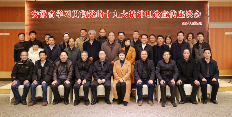 2017年12月28日,正逢学校82周年校庆,来自安徽省委宣传部,安徽日报社,《江淮论坛》,省中国特色社会主义研究基地的领导、专家、学者齐聚芜湖,召开学习贯彻党的十九大精神理论宣传座谈会。本次活动由省中国特色社会主义理论体系研究中心、安徽日报社和安徽工程大学联合举办。