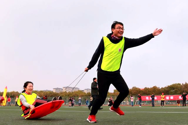 阳春三月,柳绿花红,莺歌燕舞。3月8日,时值第108个三八妇女节,我校在第一田径场开展“培育家国情怀,幸福美好时代”主题系列庆祝活动首场“幸福欢乐动起来”趣味运动比赛。校党委副书记、校长刘宁,校党委副书记苏国红莅临活动现场,指导并参加了活动。来自各学院、机关、教辅和后勤的16支队伍参与比赛,校工会、和各参赛单位领导、老师共计500余人到场助威。历经激烈角逐,体育学院、后勤总支、机械学院和数理学院荣获一等奖。