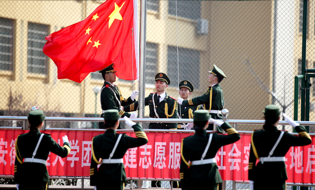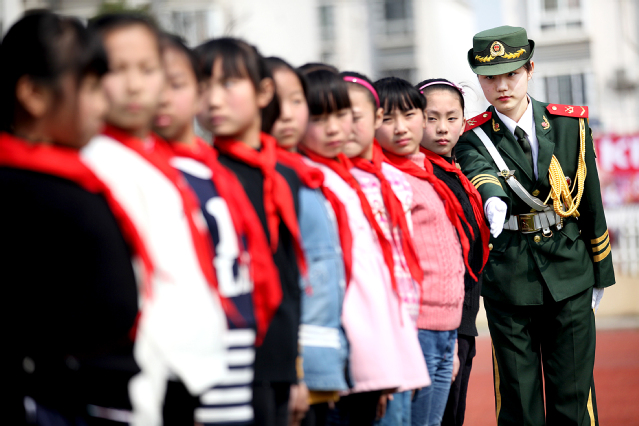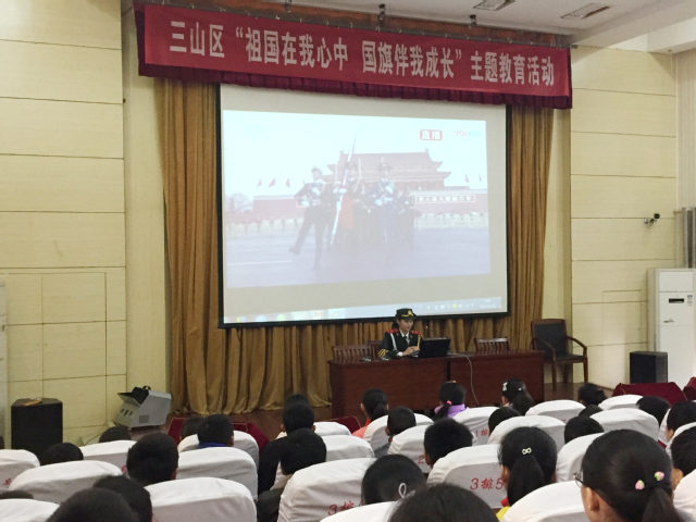 随后,我校国旗班队员为第三十九中学、龙湖中心小学开展了“小小升旗手”选拔培训活动。面向中小学生集中开展了“祖国在我心中 国旗伴我成长”主题教育活动。