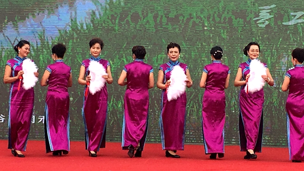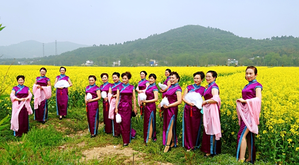活动在风景秀丽的三山区响水涧风景区举行,共有全市各区县、高校等七支表演队参加,分别展示了不同风格的旗袍魅力,我校的《旗袍雅韵》充分展示了高校教师典雅知性、温婉脱俗的优雅风采。为了圆满完成演出任务,能在这个春天的舞台上完美呈现,参演队员们每天晚上加班加点进行行走和表演训练。表演不仅得到了主办方的充分肯定,也赢得了现场观众和其他表演队伍的热情掌声,正如随队学生微媒团队小记者们所感,老师们真美,宛如古典的花,盛开在金黄的油菜花海中,惊艳了时光,典雅了春天。