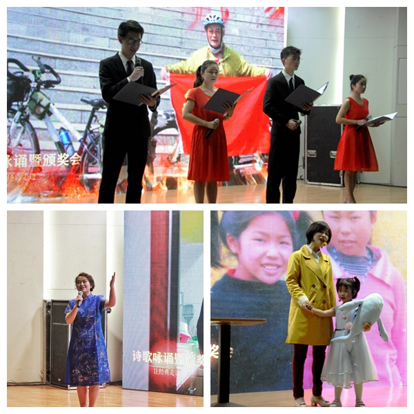 诗歌吟诵在校附属幼儿园小朋友们精彩的歌舞表演《春晓》中拉开序幕。省教育系统演讲比赛冠军张茜和她的爱人陶冶深情朗读《给我的孩子》,质朴的语言中流露出对孩子无微不至的关怀;78岁高龄的省部级劳模冯寿崑激情朗诵《对衰老的回答》,儒雅之中的坚定让人肃然起敬;笑面人生,铸铁成花,纺织与服装学院身残志坚的邹梨花老师与女儿一起朗诵的《笑》,表达了对幸福生活的由衷感谢;重走长征路,传承长征精神,感恩党的伟大,赵国庆教授和曹锦芬的红色骑行故事寓情于校广播台同学深情朗诵的《长征》之中;长情的陪伴最可贵,校工会女工委员王燕老师用《我愿是激流》讲述了全国最美家庭获得者王幼民、唐铃凤长情陪伴的温暖故事;美丽的校工会女工委委员们带来的经典诗歌《致橡树》,深情表达了对独立而美好的爱情追求和向往,将全场的氛围推向高潮。