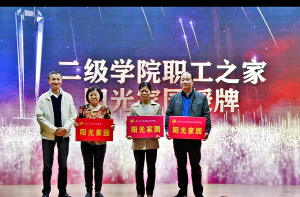 活动中穿插进行了相关颁奖。苏国红、郭兴众及王红月为荣获“2017年安徽省教育系统师德先进个人”的吴之传、项立群和严楠老师颁奖;王兰为校女职工委员会颁发“安徽省女职工工作先进集体”奖牌;校工会主席王河为校工会2018年支持建设的管理工程学院、计算机与信息学院、建筑工程学院的 “职工小家” 和女教职工“阳光家园”授牌。