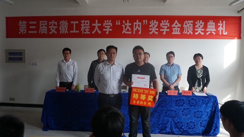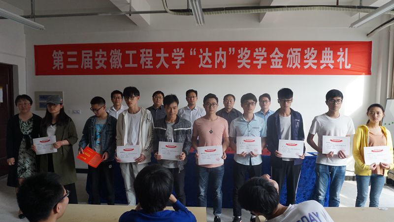 首先由章靖平宣读第三届“达内”奖学金获奖学生名单。随后获奖学生依次上台,由颁奖嘉宾颁发荣誉证书并合影留念。特等奖学金获得者边浩东同学代表获奖学生发言。他对达内集团和学校以及老师们表示感谢,并表示要努力学习,不断提高自身实力,为国家为社会做出自己的贡献。纪仁义简单回顾了达内集团与计算机与信息学院的合作情况,并鼓励获奖学生脚踏实地,学一身真本事。最后,汪军代表学院向获奖学生表示祝贺,对达内集团设立奖学金表示感谢,鼓励同学们牢记习近平总书记所说“幸福是奋斗出来的”,努力学习,提高本领,为实现中国梦贡献自己的力量。