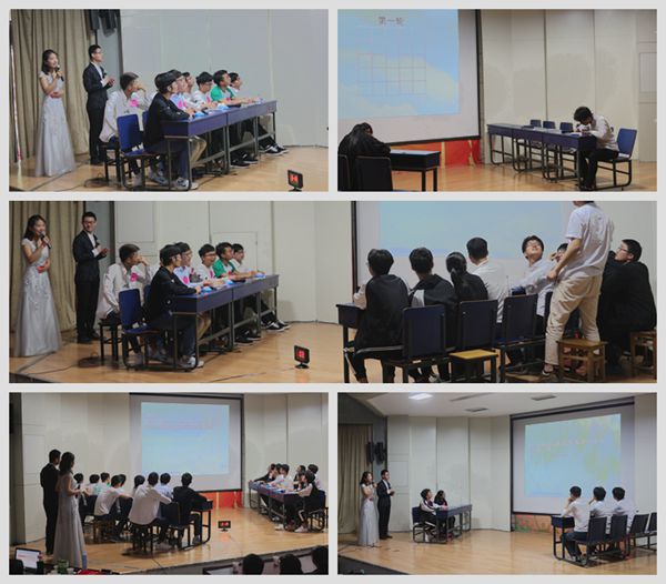 决赛在一段动感活泼的VCR视频风采展示中拉开帷幕,主持人首先向大家宣读了比赛规则及注意事项。决赛共有互相问答、分秒抢答、记忆大复活和绝地大反击四大环节。互相问答环节,比赛双方你点我答,在短短的四十秒钟相互斗智斗勇斗法。看着场上选手们眉头紧锁的样子,台下观众不禁为他们捏了一把汗,一轮比赛下来,虽然脑力消耗很大,但选手们依然精神满满。抢答题环节,选手们高度集中注意力,争取在最短的时间内想出答案并成功抢答,此环节中他们的精彩表现,不时引来观众阵阵掌声。记忆大复活重点考查选手的短时记忆能力,A组选手在此环节抓住机遇,最终以54分的成绩成功晋级第四环节。第四环节的绝地大反攻是整个比赛最激动人心,也最能考查选手综合数学素养与团队合作精神的环节,本环节无论是题目数量还是总体难度都较之前有所提高。面对集智力和逻辑判断等高难度的数学题目,各位选手依然沉着应战,机智反应,为争取团队的最后胜利勇于拼搏。
