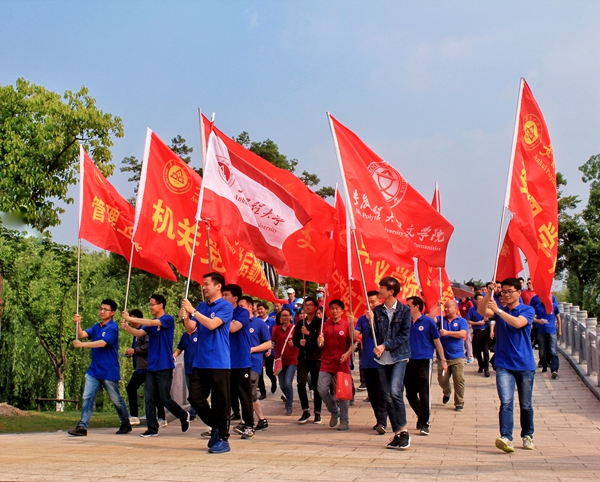 人间四月,鸟语花香。4月25日下午,由校工会联合体育学院、校团委主办的“走进新时代 快乐健康行”活动在雕塑公园举行。校党委副书记、校长刘宁,校党委副书记苏国红,副校长郭兴众,纪委书记王红月与全校教职工一道,以低碳环保方式参与了全程5.6公里的徒步走活动。